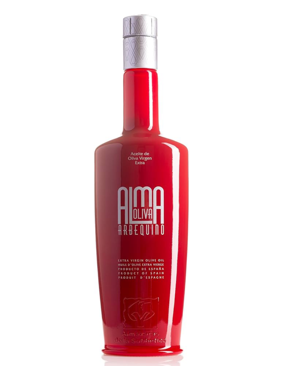 Almaoliva Arbequino: Aceite de oliva virgen extra de cosecha temprana y extracción en frío producido en la provincia de Córdoba con aceitunas de la variedad Arbequina. En nariz presenta un frutado muy complejo, llevándote a percibir los intensos aromas de la hierba, camomila, banana y cítricos. Inicialmente tiene un toque dulce y almendrado. Presenta una armonía perfecta en el amargor y el picor. Es un aceite complejo y persistente.