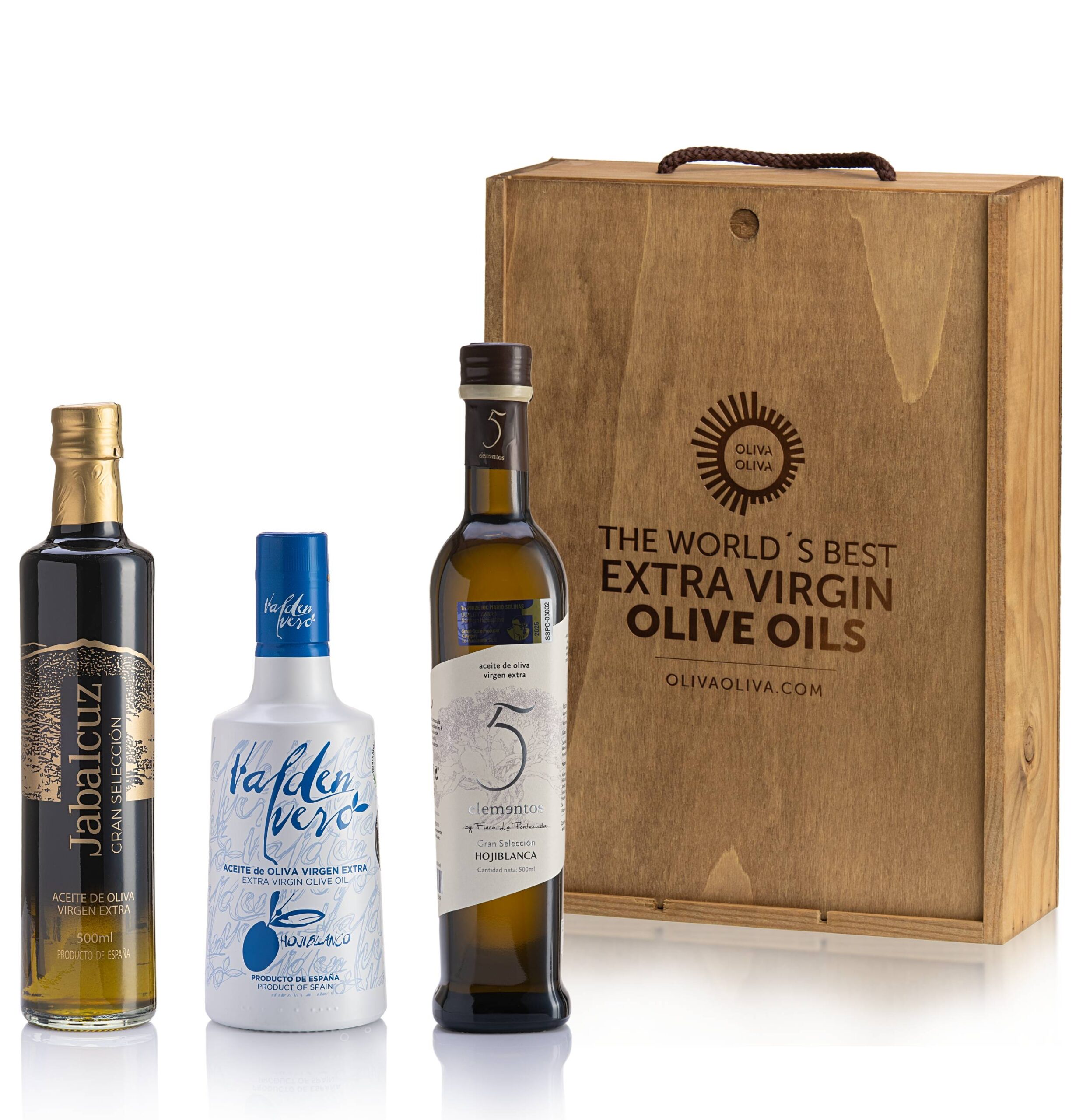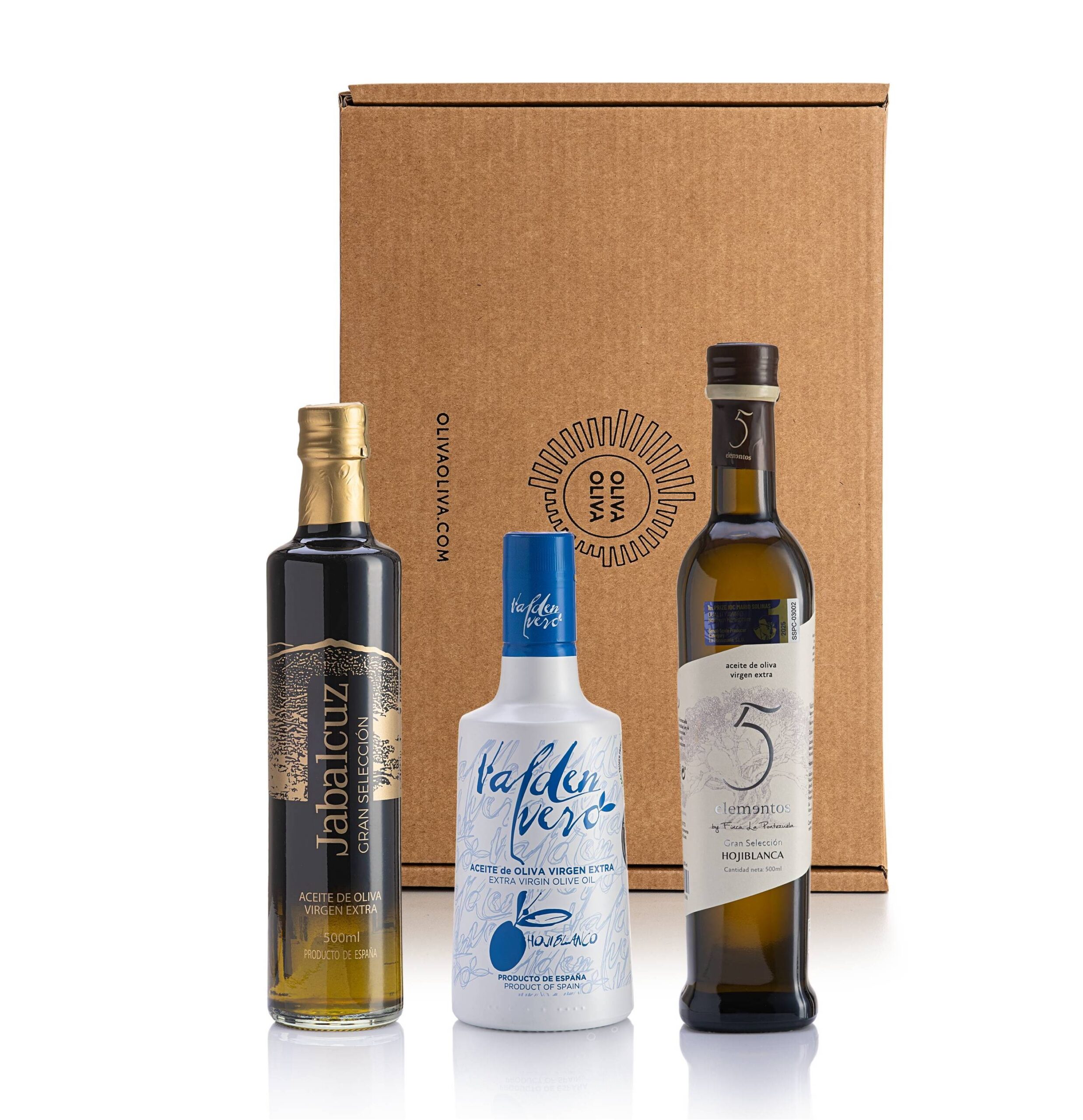 5 Elementos Gran Selección Hojiblanca: Aceite de oliva virgen extra producido en Los Navalmorales (Toledo) con aceitunas de la variedad Hojiblanca. En nariz se percibe un frutado de aceituna verde de intensidad media, marcado por su gran complejidad. Destacan aromas con tonos herbáceos, hierbas aromáticas y frutas frescas. En boca están perfectamente equilibrados un ligero amargor y dulzor, mientras que el picante es intenso y persistente.