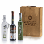 En nuestra caja regalo se incluyen tres aceites de oliva virgen extra que obtuvieron la clasificación de mejores del mundo con medallas “premier” y oro. Las tienes tanto en estuche de cartón como en caja de madera, junto con un diploma acreditativo.
